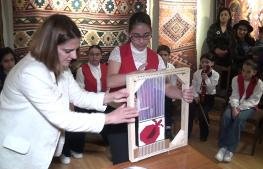 2023-05-22 Գուգարաց թեմի «Տուն» սոցիալ-կրթական կենտրոնի կարպետագործության խմբակի սաները Լոռի-Փամբակի երկրագիտական թանգարանում ներկայացրին Հայկական լեռնաշխարհում հայտնաբերված բնական գունանյութերը, ցուցադրեցին՝ ինչպես է ներկվում թելը և փայտե հենքի վրա ծնվում կարպետը: