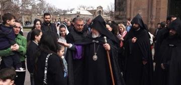 Վեհափառ Հայրապետը օրհնություն բաշխելով հավատացյալներին՝ մուտք է գործել Մայր Տաճար: Սուրբ և Անմահ Պատարագ է մատուցել Դավիթ աբեղա Օհանյանը: Արտաքսման կիրակիի խորհուրդը մեկնել է Վահան եպիսկոպոս Հովհաննիսյանը, հիշեցնելով, որ Մեծ Պահքը հոգևոր ինքնաքննության ու վերանորոգության ժամանակ է: Հայրապետական...