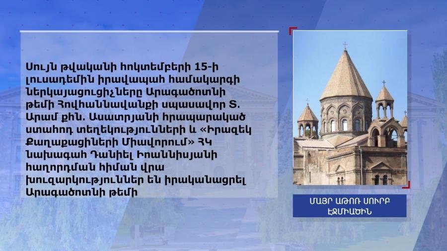 «Սույն թվականի հոկտեմբերի 15-ի լուսադեմին իրավապահ համակարգի ներկայացուցիչները Արագածոտնի թեմի Հովհաննավանքի սպասավոր Տ․ Արամ քհն․ Ասատրյանի հրապարակած ստահոդ տեղեկությունների և «Իրազեկ Քաղաքացիների Միավորում» ՀԿ նախագահ Դանիել Իոաննիսյանի հաղորդման հիման վրա խուզարկություններ են իրականացրել Արագածոտնի թեմի առաջնորդարանում, Արագածոտնի թեմի առաջնորդ Գերշ․ Տ․ Մկրտիչ եպս․ Պռոշյանի և Արագածոտնի թեմի քահանաների ու աշխատակիցների բնակարաններում։ Այս պահին հայտնի տեղեկություններով բերման են ենթարկվել Արագածոտնի թեմի առաջնորդը, թեմի 12 քահանաներ՝ Արժ․ Տ․ Փառեն քհն․ Առաքելյանը, Արժ․ Տ․ Հայկ քհն․ Քոչարյանը, Արժ․ Տ․ Մկրտիչ քհն․ Երանյանը, Արժ․ Տ․ Մանուկ քհն․ Զեյնալյանը, Արժ․ Տ․ Ղևոնդ քհն․ Գափոյանը, Արժ․ Տ․ Հայկ քհն․ Սահակյանը, Արժ․ Տ․ Սարգիս քհն․ Սարգսյանը, Արժ․ Տ․ Գարեգին քհն․ Արսենյանը, Արժ․ Տ․ Նարեկ քհն․ Սարգսյանը, Արժ․ Տ․ Օշին քհն․ Հայրապետյանը, Տ․ Վրթանես քհն․ Բաղալյանը, Արժ․ Տ․ Համբարձում քհն․ Դանիելյանը, Արագածոտնի թեմի հաշվապահը, գանձապահը և գործավարը։ Օրենքի կոպտագույն ոտնահարմամբ ժամեր շարունակ ծածուկ է պահվել Արագածոտնի թեմի առաջնորդ Գերշ․ Տ․ Մկրտիչ եպս․ Պռոշյանի, Արժ․ Տ․ Սարգիս քհն․ Սարգսյանի, Արժ․ Տ․ Նարեկ քհն․ Սարգսյանի, Արժ․ Տ․ Օշին քհն․ Հայրապետյանի, Արժ․ Տ․ Համբարձում քհն․ Դանիելյանի, Տ․ Վրթանես քհն․ Բաղալյանի պահման վայրը, և նրանք զրկված են եղել իրավական աջակցություն ստանալու որևէ հնարավորությունից։ Արագածոտնի թեմի առաջնորդի, թեմում ծառայող քահանաների և աշխատակիցների նկատմամբ իրականացված ապօրինի քրեական հետապնդման գործողությունները հերթական դրսևորումն են իշխանությունների հրահրած հակաեկեղեցական համակարգված արշավի։ Նմանօրինակ դատապարտելի գործողություններով ակնհայտ չարամիտ դիտավորություն է հետապնդվում խափանելու Եկեղեցու բնականոն գործունեությունը, հարվածելու Եկեղեցու հեղինակությանը և վախի ու տագնապի մթնոլորտ տարածելու հոգևորականների, հավատացյալների ու հանրության լայն շրջանակներում։ Հակաօրինական այս գործողությունների պատճառով խոչընդոտվել է թեմի գործունեությունն ու ծիսաարարողական կյանքը, խաթարվել հոգևոր հովիվների ծառայությունը։ Ամբողջատիրական համակարգերին բնորոշ նմանօրինակ բռնաճնշումների կիրառմամբ ՀՀ իշխանությունները կոպտորեն ոտնահարում են կրոնական ազատության իրավունքը, վիրավորում հավատացյալների կրոնական զգացումները, շարունակում տարածել ատելություն՝ խորացնելով հանրային պառակտումը։ Մեր հոգևորականներին և հավատացյալ ժողովրդին կոչ ենք ուղղում չտրվել սադրանքներին, ամուր մնալ Եկեղեցու պաշտպանության դիրքերում։ Խարդավանքներով, սպառնալիքներով և բռնաճնշումներով հնարավոր չէ ընկճել հոգևոր սպասավորներին և հավատավոր ժողովրդին։ Աղոթում ենք հայրենի մեր երկրի խաղաղության և մեր ժողովրդի անվտանգ կյանքի համար»։