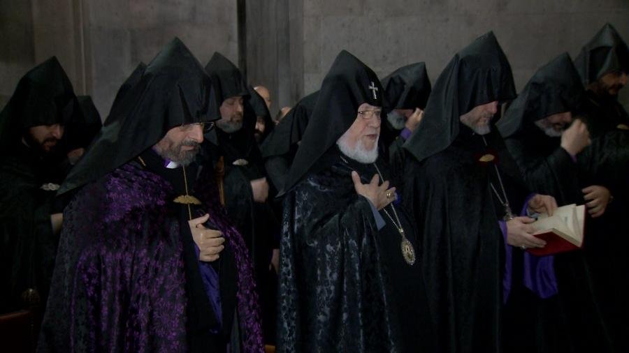 The Brotherhood of the Mother See led the Patriarch of All Armenians and His Eminence Archbishop Sahak Mashalyan, the Armenian Patriarch of Constantinople to the St. Vardan and St. John the Baptist Chapel-baptistery where the Sunrise service was performed. This service is performed during Great Lent and reminds the faithful about the Second Coming of Christ and the resurrection of the Righteous.