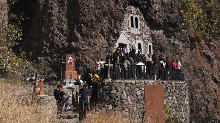 October 7 marks the feast of the memory of the holy virgins Tekh, Varvara and Peghagea. With the blessing of the Primate of the Aragatsotn Diocese, Bishop Mkrtich Proshyan, the Relic of the Holy Virgin Varvara was transferred to Tsaghkevank on the occasion of the day of the memory of the holy virgins. Father Yeghishe Barseghyan, the spiritual pastor of the Mughni parish, celebrated the Divine Liturgy in the cave.