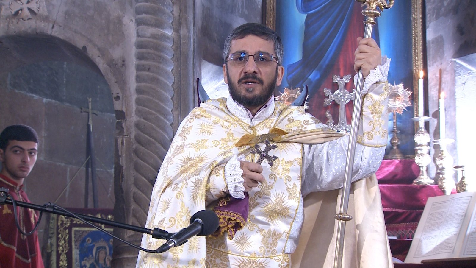 Our boat is also rocking today, but the Lord said, "Do not be afraid." The vicar of the Masyatsotn Diocese, Archimandrite Ruben Zargaryan, delivers a sermon during the Sunday liturgy.