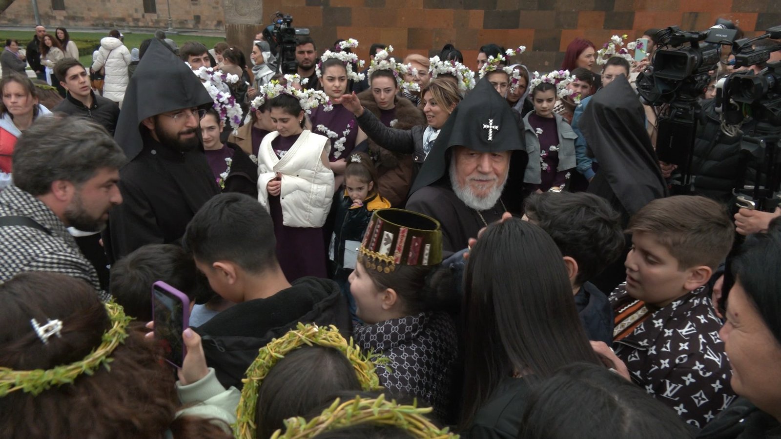 With the blessing of His Holiness Karekin II, Catholicos of All Armenians, the feast of Palm Sunday has been declared a day of blessing of children. After the morning service in the Mother See, the ceremony of the Andastan and the order of blessing of children took place under the presiding authority of the Armenian Patriarch. His Holiness Karekin II, Catholicos of All Armenians, conveyed his blessing to the children, after which the willow branches blessed during the Andastan were distributed to the faithful. His Holiness presented the children with crosses. The Holy and Immortal Liturgy was served under the presiding authority of the Catholicos of All Armenians.